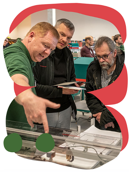 Těšte se na dva dny plné nápadů, sdílení zkušeností, praktického navrhování knih – a na nejnovější stroje a technologie pro výrobu pevných vazeb, živě v Democentru Schmedt v Hamburku.
